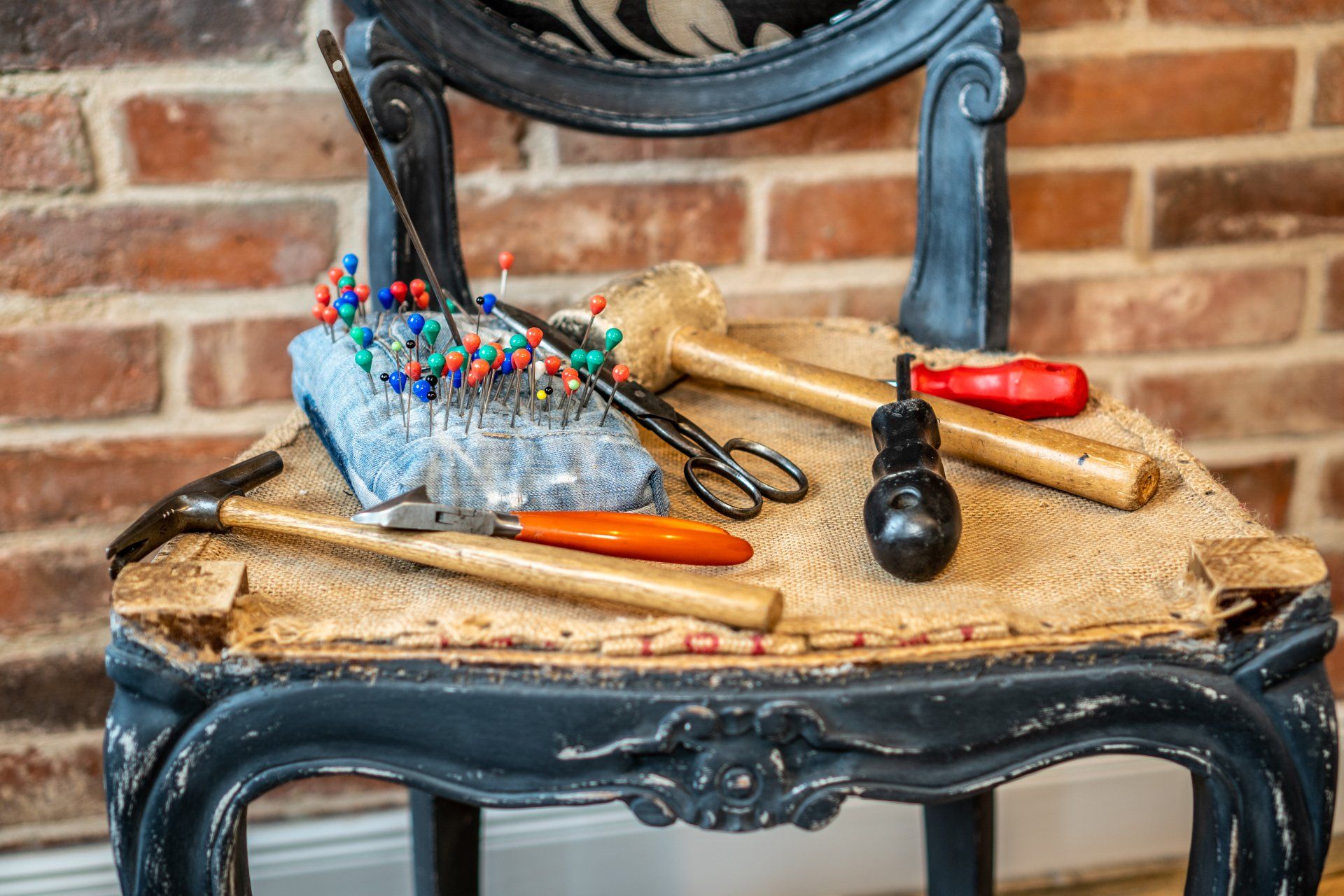 Polstern, Gestalten, Kreidefarbe, Polsterstoffe, Tapeten, alte Kleidung,...